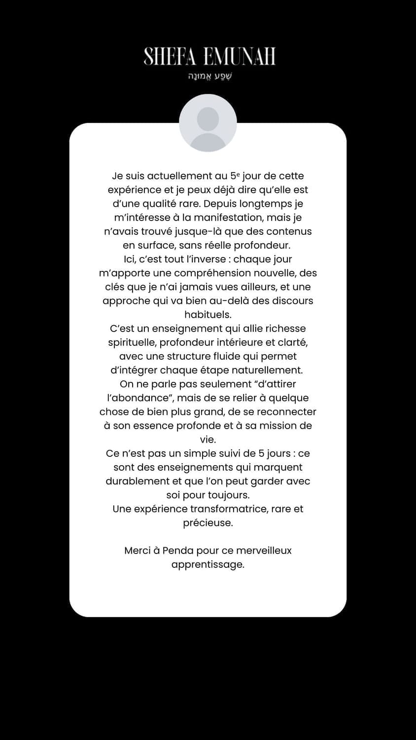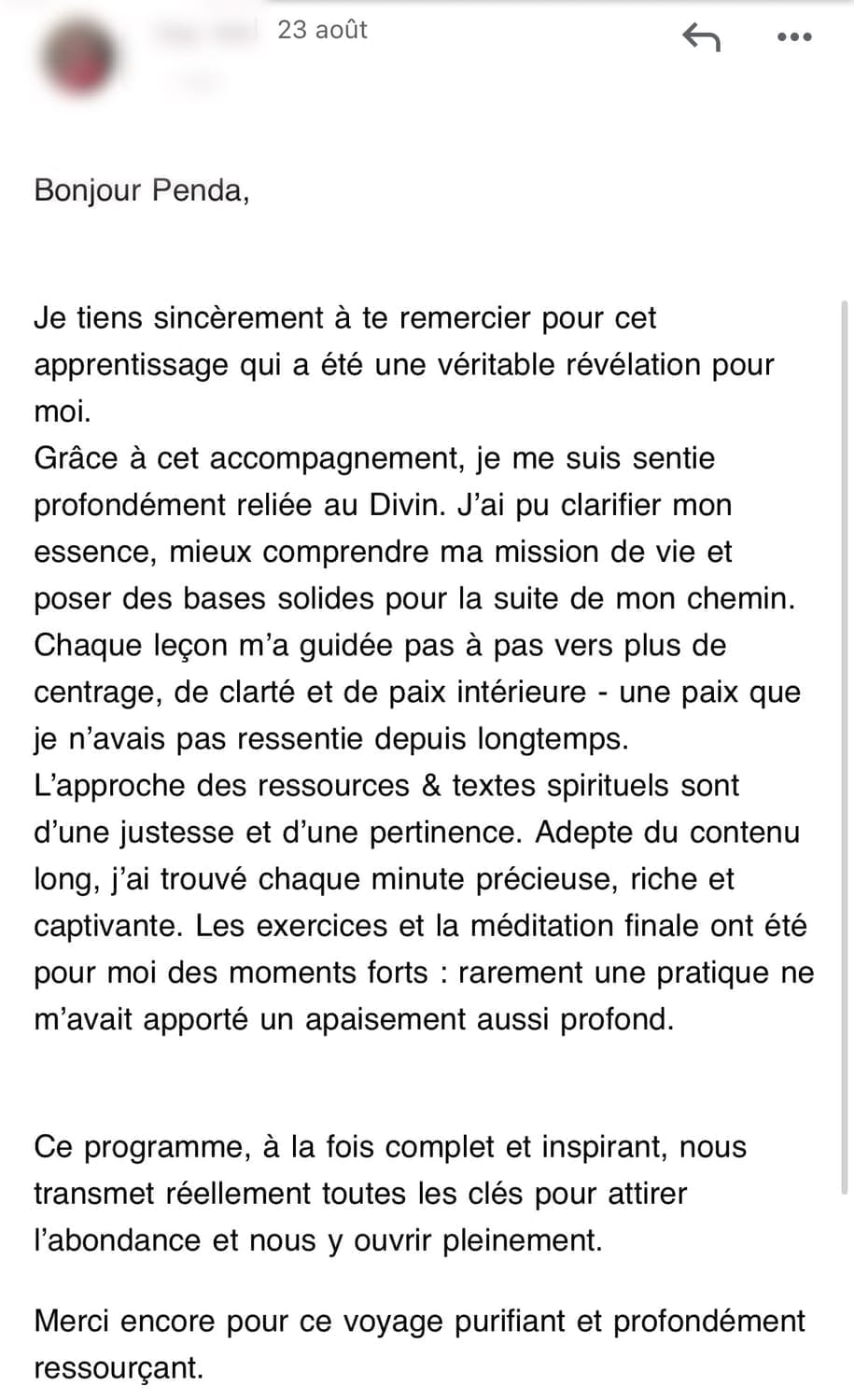 Ce challenge est un cadeau que je souhaite offrir à toutes celles et ceux qui cherchent à s’ouvrir à l’abondance divine dans leur vie.